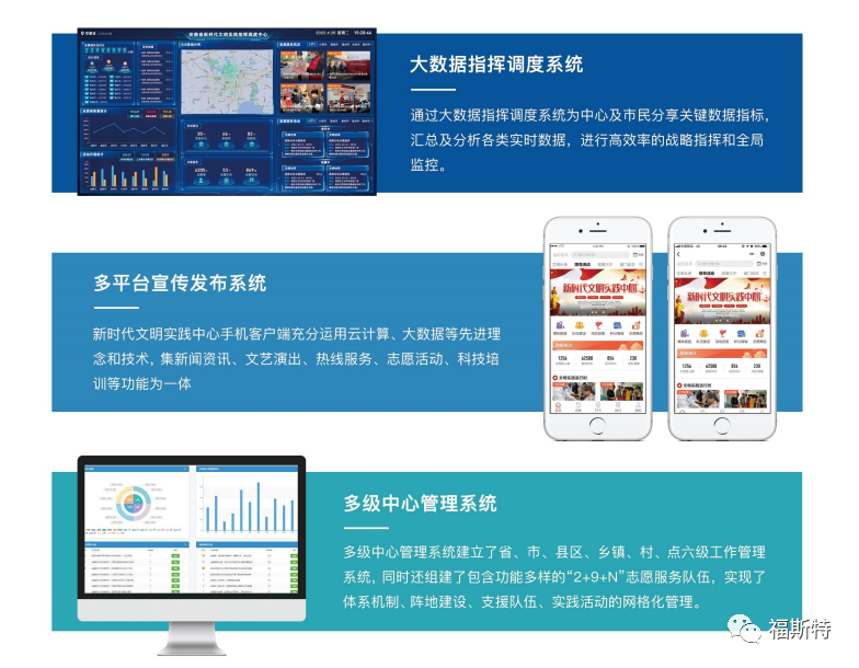 福斯特新時(shí)代文明實(shí)踐中心云平臺(tái)集服務(wù)、管理、發(fā)布、展示于一體,推動(dòng)平臺(tái)、終端、和渠道互聯(lián)互通,為基層黨的理論宣講、文化建設(shè)和為民服務(wù)提質(zhì)增效,為志愿者、受益者與管理者提供了一個(gè)安全、快捷、便利、智慧化的新時(shí)代文明實(shí)踐管理工具